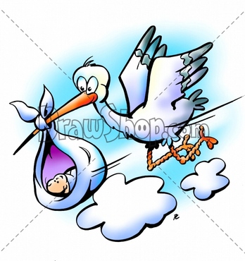 Stork flying with a baby