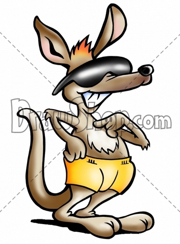 Kangaroo wearing sunglasses and yellow swimming pants