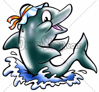 Dolphin playing in the blue water
