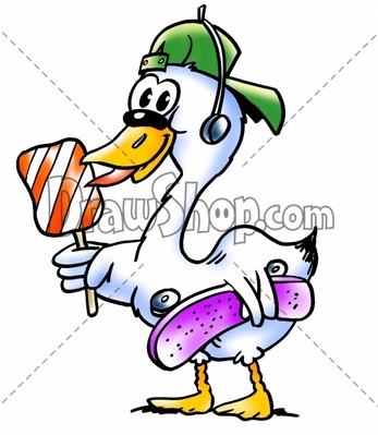 Goose with a lollipop and skateboard
