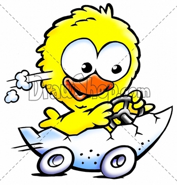 Chicken driving eggshell with wheels