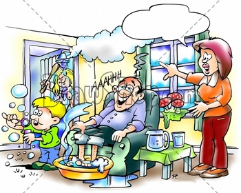 Man with feet in hot water bath
