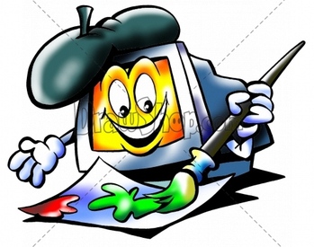 Computer screen painting colors on a white paper
