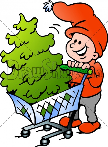 Vector illustration of an Happy Christmas Elf shopping a Christmas Tree