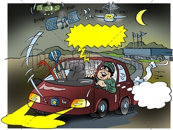 Cartoon illustration of a a thief that can not escape satellite surveillance