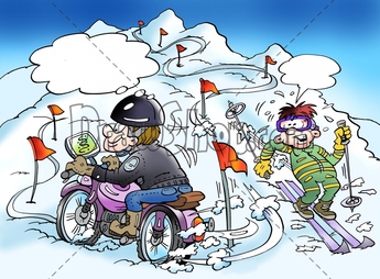 Cartoon illustration of a motorcyclist who is finding a new way through his gps