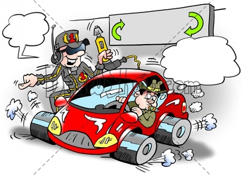 Cartoon illustration of a pensioner there has been fitted with cool new racing tires on his small car
