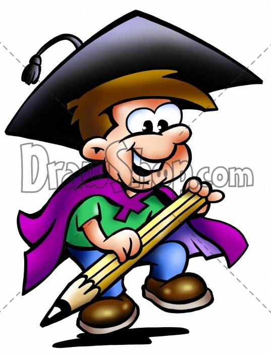 Student boy with a big pencil