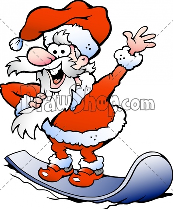 Vector illustration of an Happy Santa on snowboard