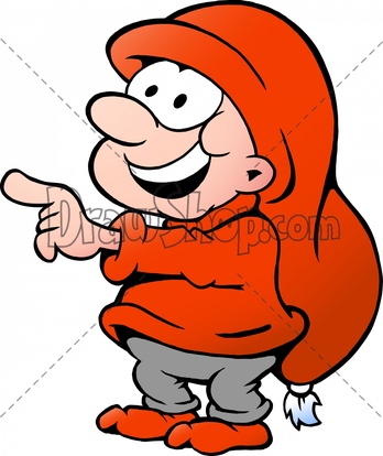 Vector illustration of an happy elf standing and pointing